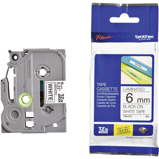 Brother TZe-211 6mm Black on white TZe tape for P-touch Label Printers