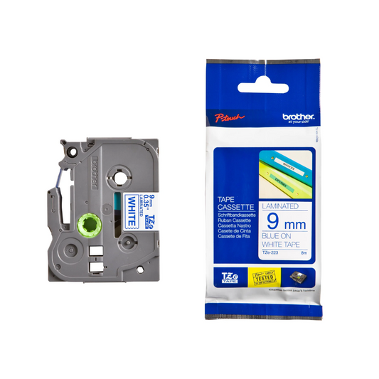 Brother TZe-223 9mm Blue on White TZe tape for P-touch Label Printers